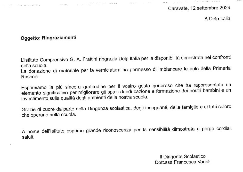 Tramite il negozio delp Italia di Besozzo è stata fatta una fornitura di materiale all’istituto Comprensivo Gabriele e Aras Frattini di Caravate (Varese). Il materiale fornito ha contribuito ad abbellire e rinfrescare le aule della primaria Rusconi.